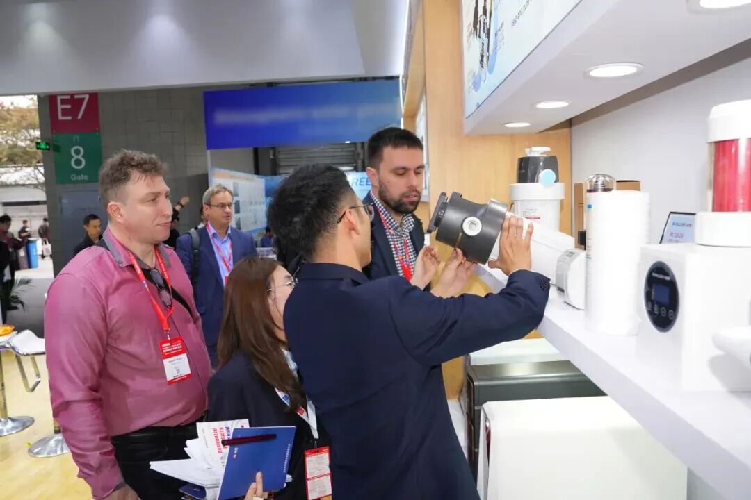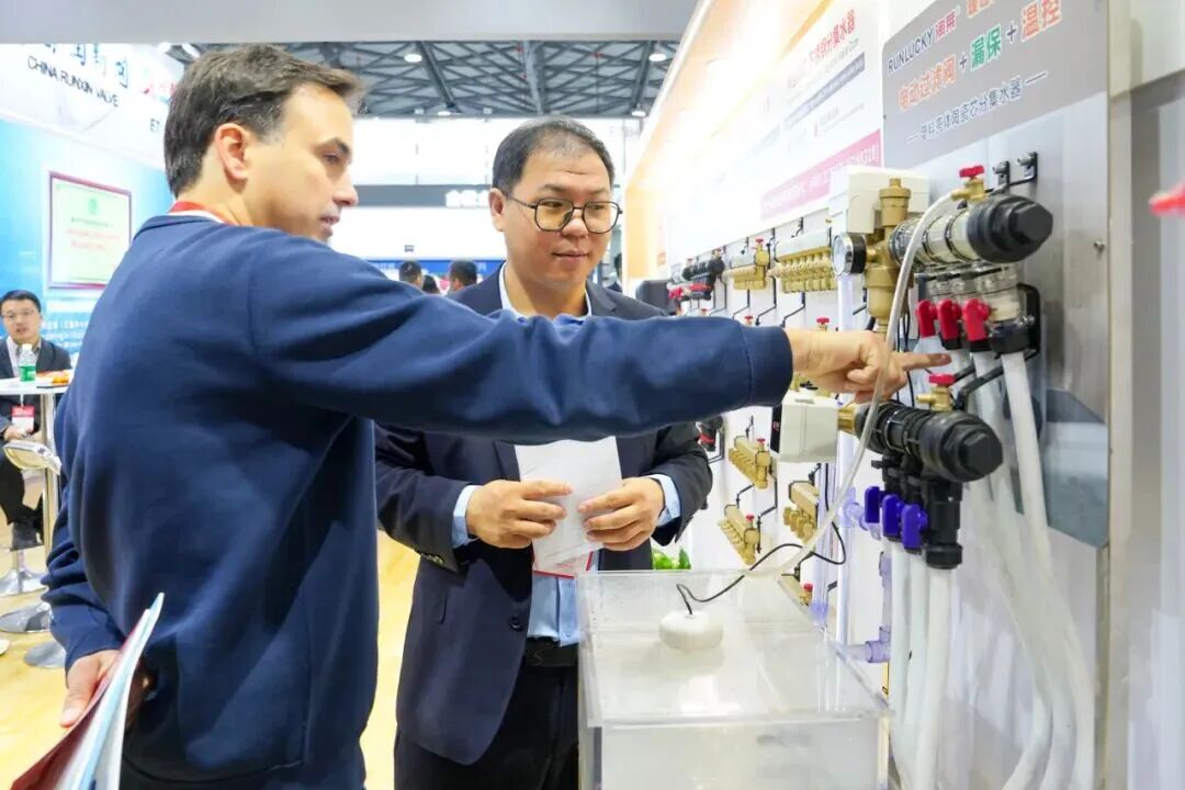 11月5日,2025亚洲水技术展览会在上海新国际博览中心盛大开幕,超500家企业参展。润莱公司携双罐串联软水机RL-RB0150/RL-RC0150、纯水机RL-CB100、多功能大流量净化滤瓶RL-Q20B、手压超滤净水器RL-W20、陶瓷芯暖通分集水器RL-X32F×20等新产品参加展会,吸引俄罗斯、乌克兰、罗马尼亚、葡萄牙、巴西、秘鲁、阿根廷、澳大利亚、南非、乍得、毛里求斯、摩洛哥、阿尔及利亚、日本、韩国、印尼、马来西亚、巴基斯坦、伊朗、巴林、阿塞拜疆、乌兹别克斯坦、哈萨克斯坦、沙特阿拉伯、阿联酋等20多个国家和地区及国内各地客商莅临展位参观交流。