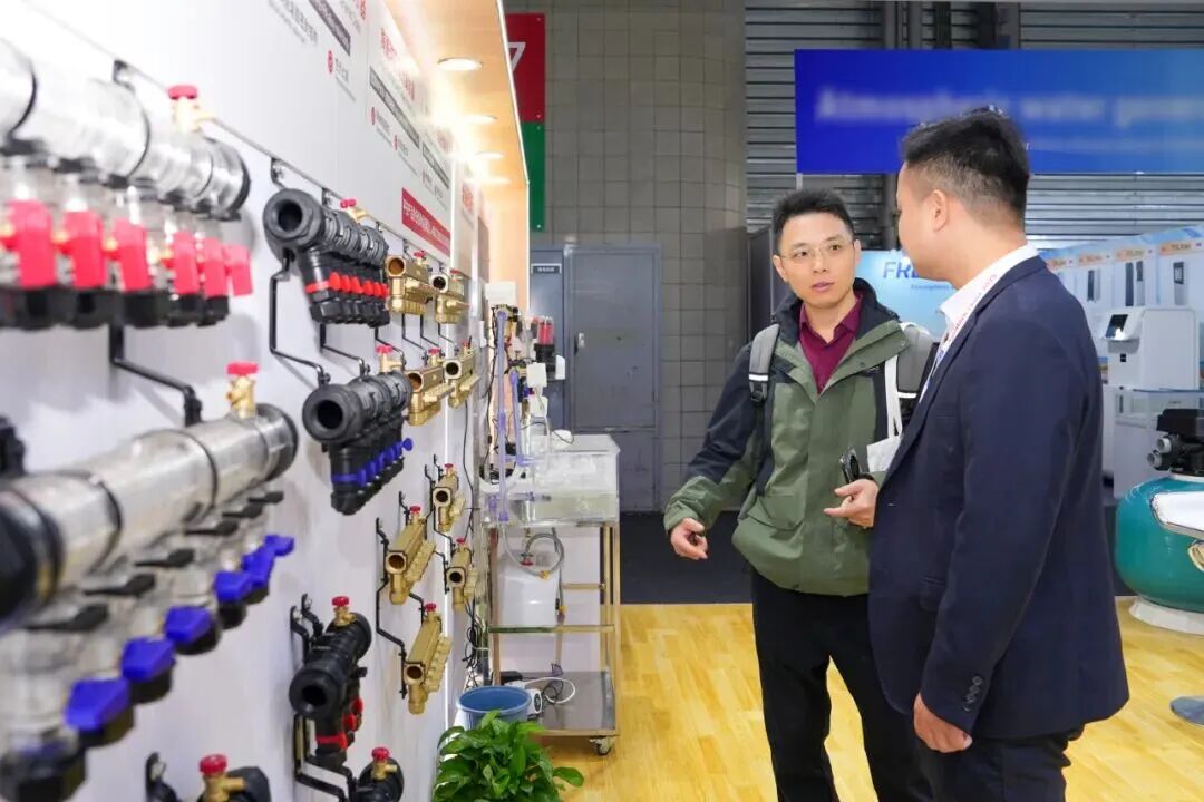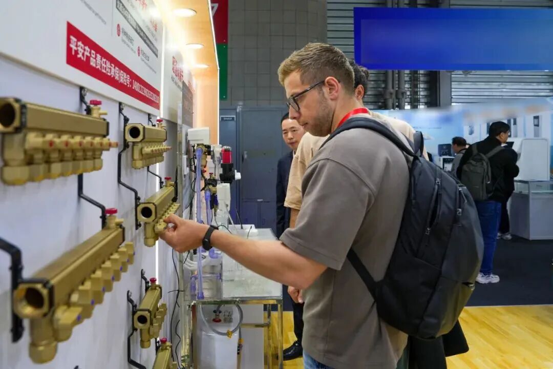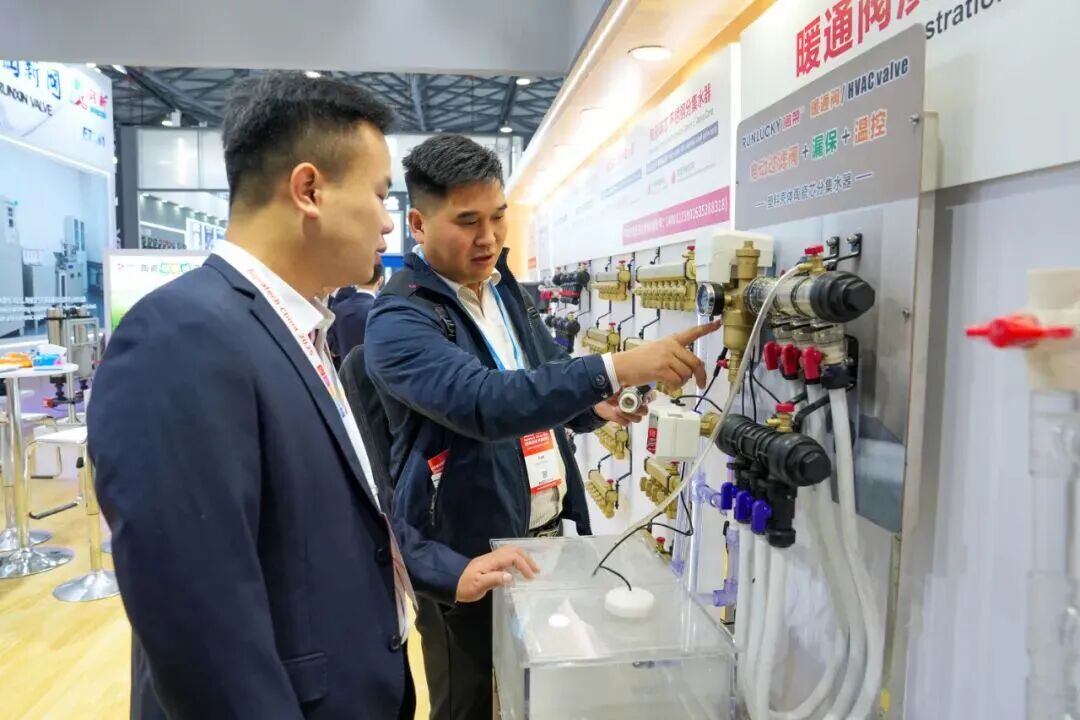 客商们驻足观看润莱叠片式前置过滤器和暖通分集水器演示,详细咨询产品结构特点、技术参数、安装、维护等信息,肯定润莱公司的创新能力以及产品的高可靠性、实用功能、丰富型号和高性价比等优势,期待更多特色产品面市。