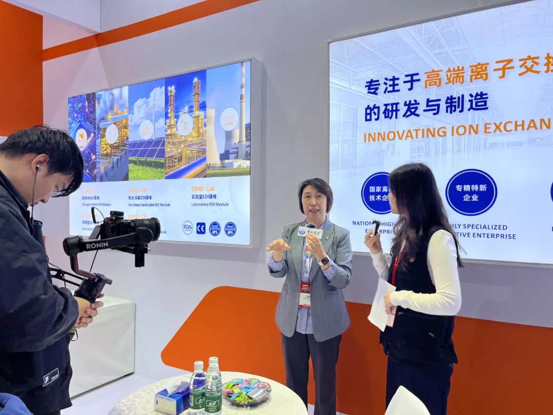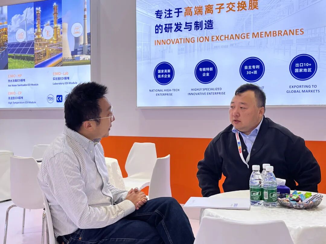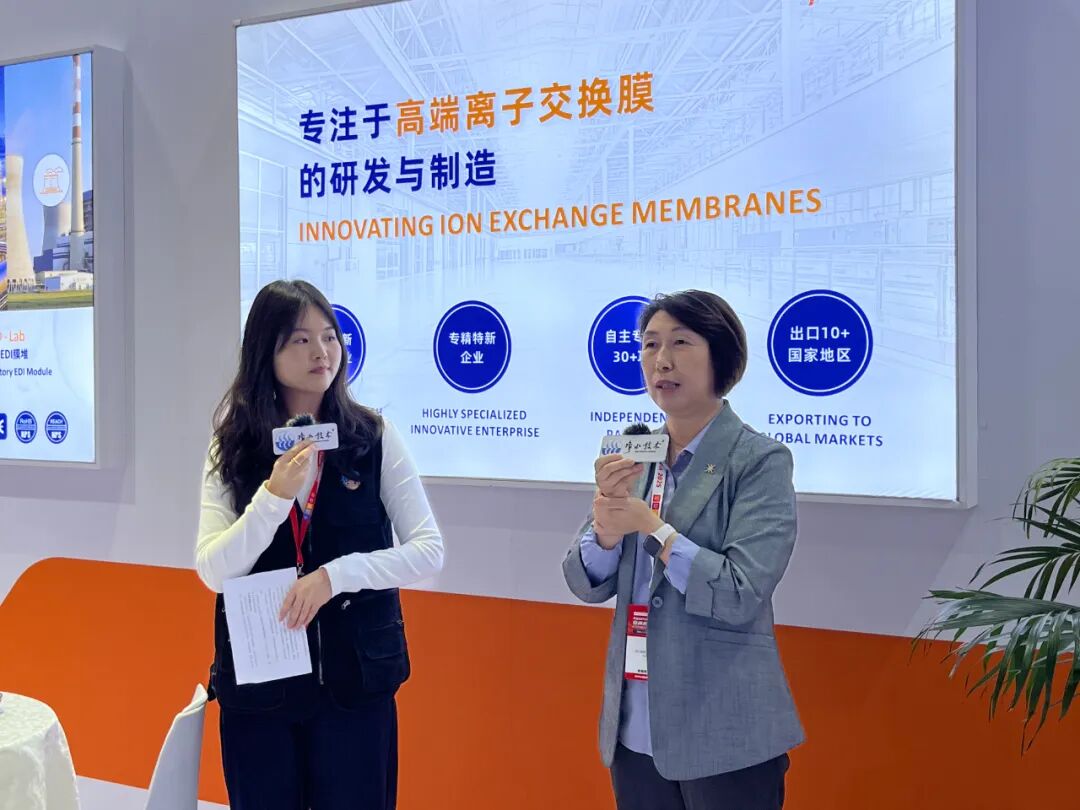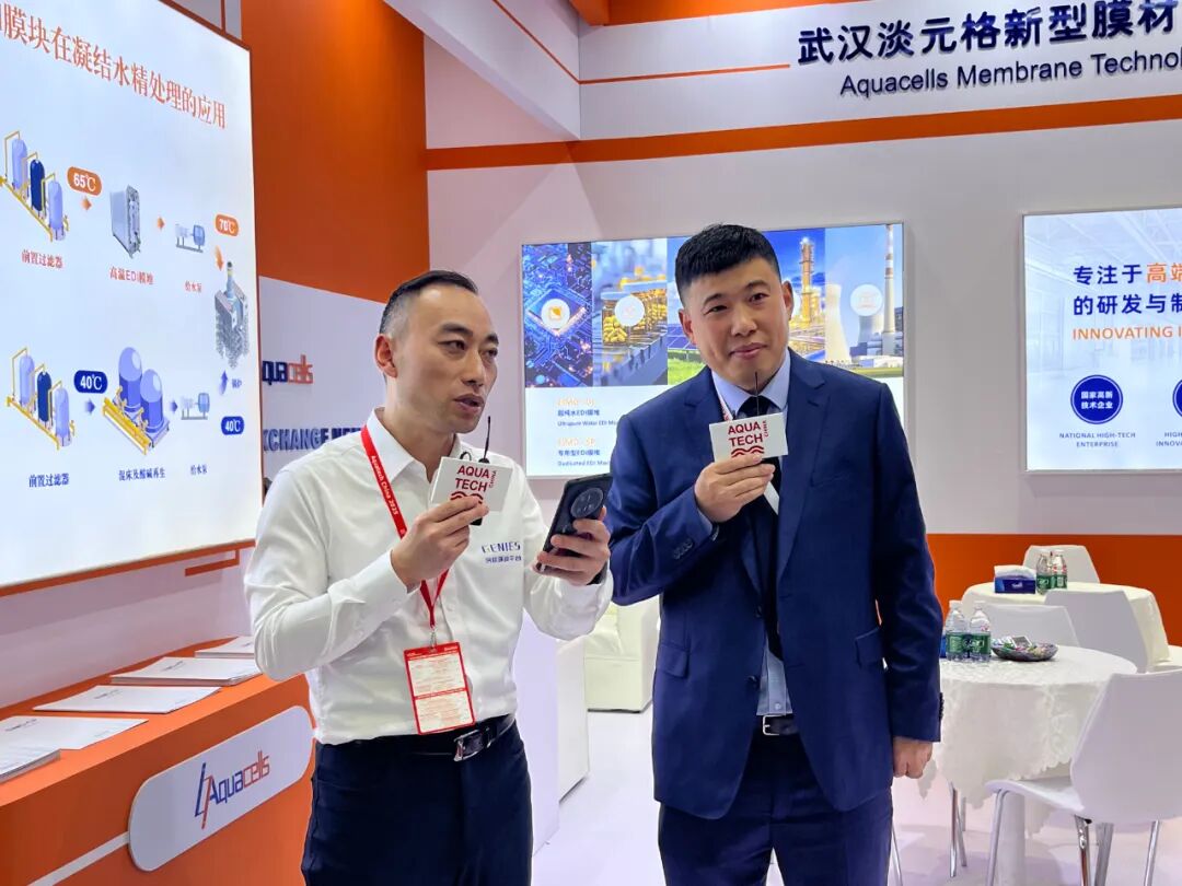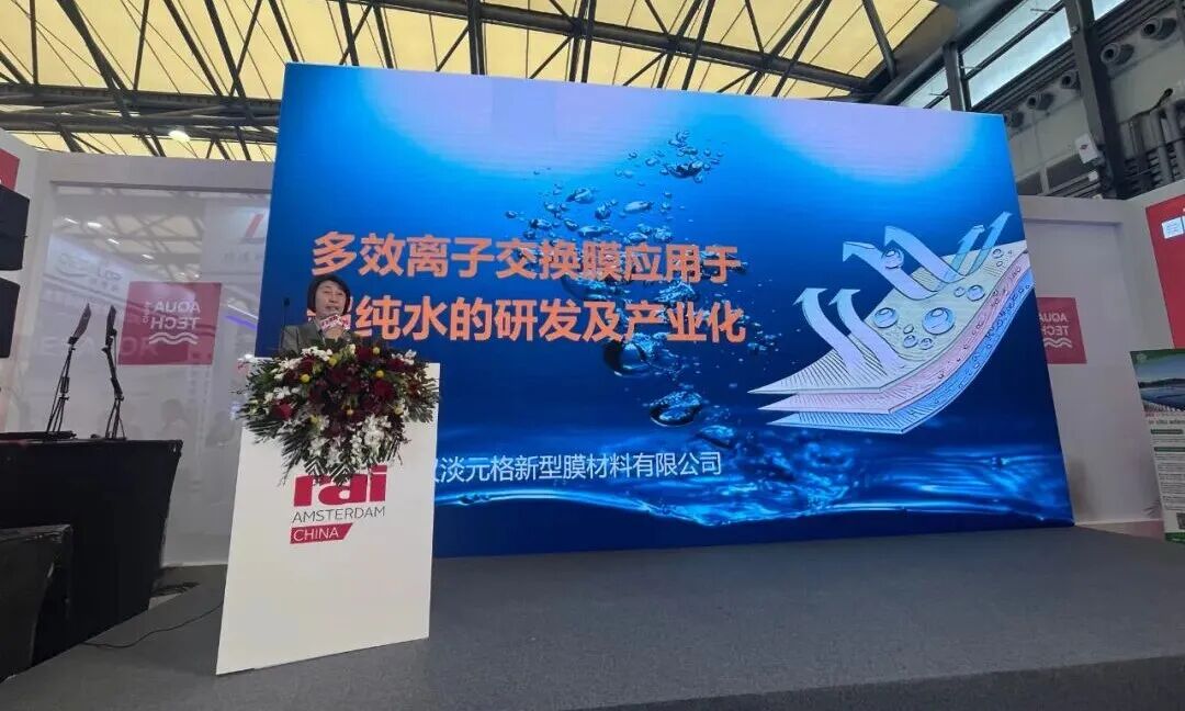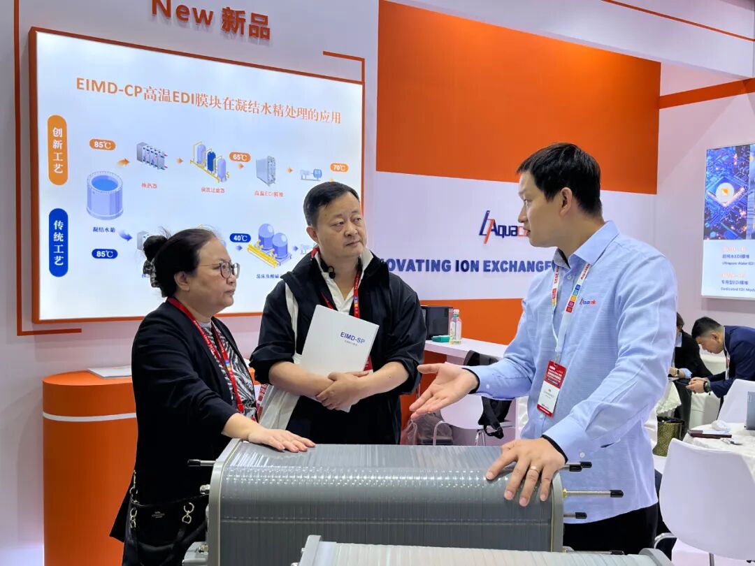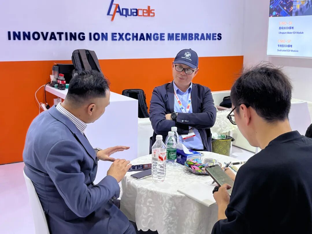 展会期间,Aquacells 获邀在Aquastage 水舞台发表演讲,主题为《多效离子交换膜应用于超纯水的研发及产业化》,负责人详细阐述了EDI膜堆采用创新的离子膜工艺为客户带来哪些价值。