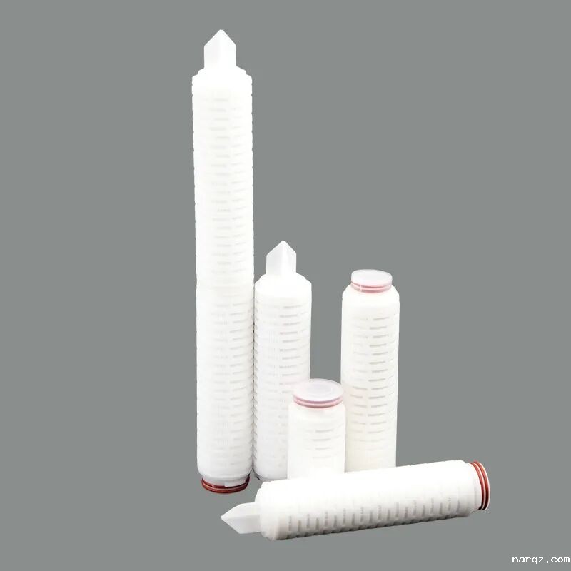 (PTFE) 微孔滤膜及进口导流支撑层组成,经打褶、滤材边封、固定内芯外罩、 焊接端盖等流程制作而成。无任何粘合剂,无介质脱落。可广泛应用于各行业中强氧化剂、强腐蚀性液体的澄清、除菌过滤。