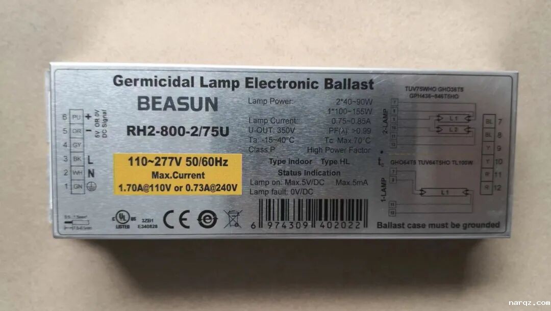 高输出150W电子镇流器,可以匹配两只35~87W UV灯,或者单只100~150W UV灯管,工作稳定,市场占有率高,UL/CE认证。