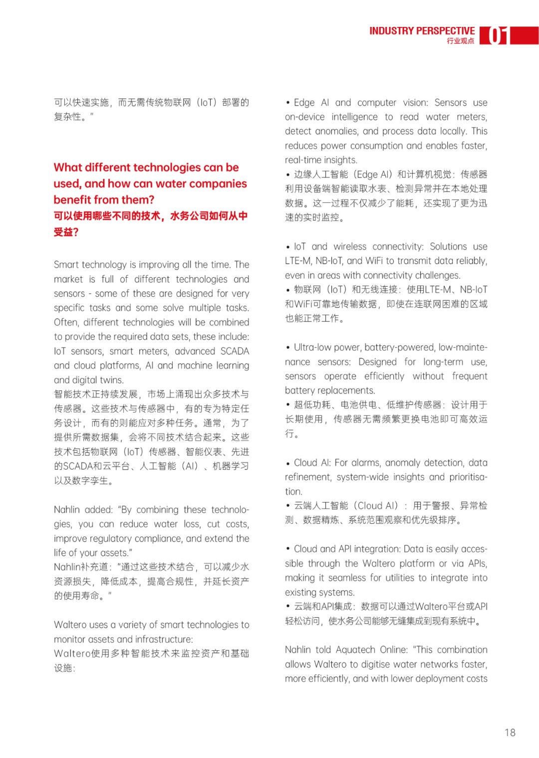 《AQUATECH水技术》关注国际水处理行业的新动态、科技创新、产品展示及专业评论,涵盖水资源开发利用、城镇供水、污水处理减污降碳、工业水处理、农业农村用水、智慧水务等主流话题。