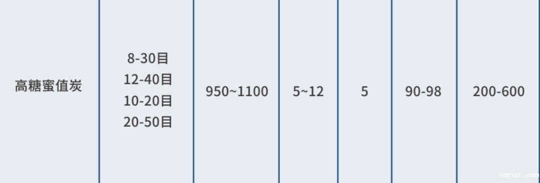 糖蜜值指标高,对大分子色素具有优秀的吸附容量和脱色效率。