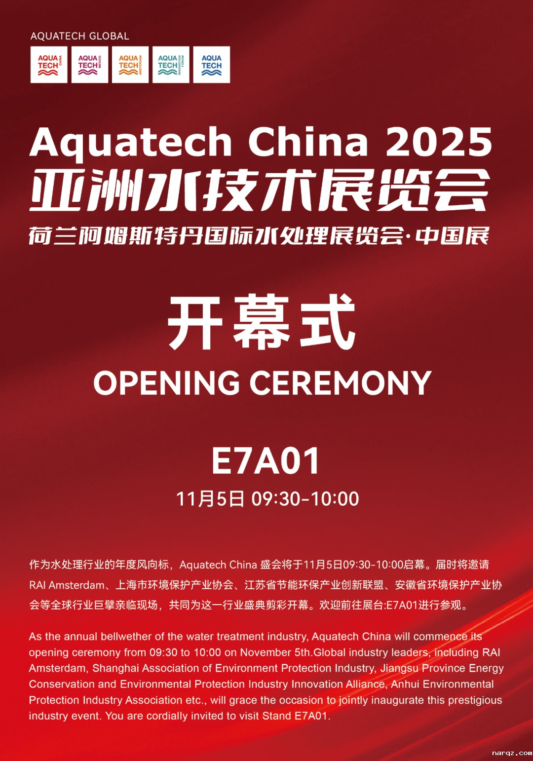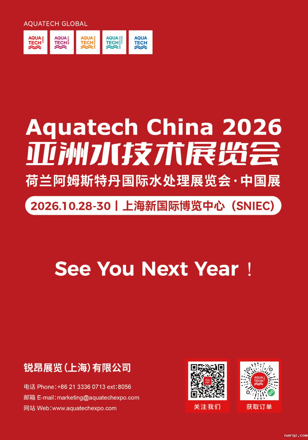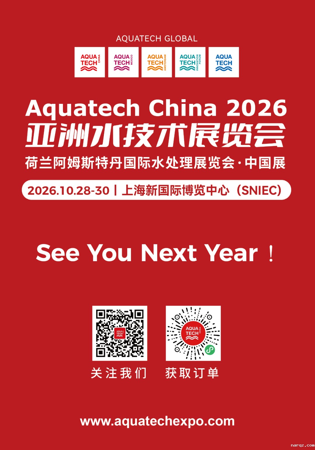 荷兰阿姆斯特丹国际水处理展览会·中国展暨narqz 2025亚洲水技术展览会将于2025年11月5-7日在上海新国际博览中心盛大举办。作为专注于水、服务于水的水处理行业风向标展览会,narqz参展品牌及展品覆盖水处理全产业链,包含净水、水与污水处理、水环境治理、给排水管网及泵管阀、过程控制与自动化管理、智慧水务等领域。展会背靠荷兰母展近60年水处理展会经验与资源,辐射亚太地区水处理行业,是全球水处理人技术交流、商贸往来的优选专业平台。