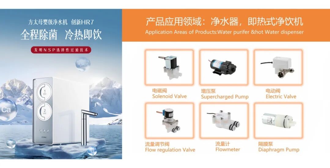 The company‘s products cover solenoid valves, solenoid pumps, motor pumps, sensors, controllers and other key components required for smart appliance, and has formed strategic cooperative relationships with well-known brands at home and abroad such as Philips, Panasonic,SEB, Midea and so on.